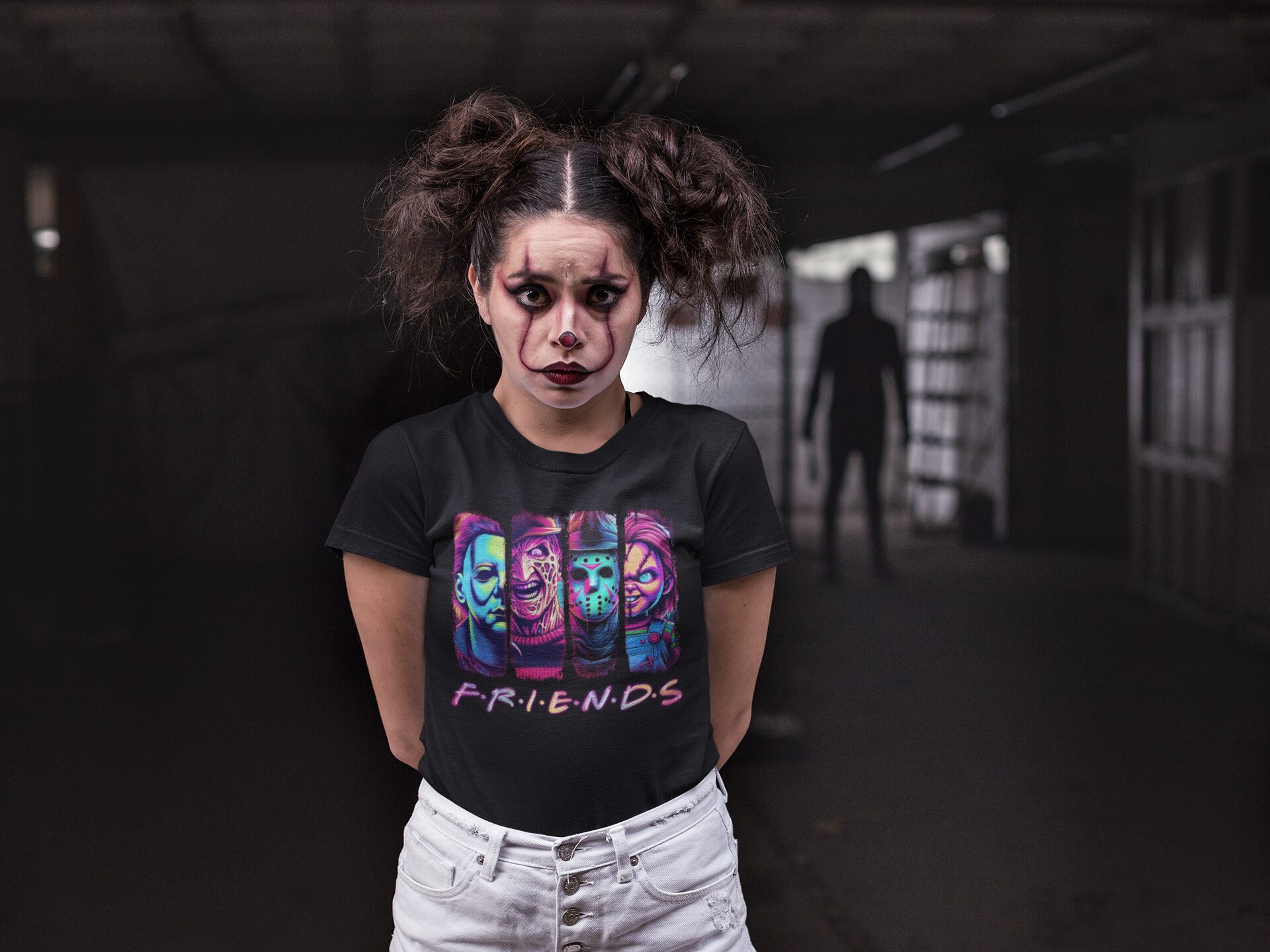 This is a 100% cotton shirt produced by Gildan. We use the DTF (Direct to film) method to print and then press the image onto the garment. These shirts feature your favorite horror film stars, Freddy, Chucky, Michael, and Jason. And the best part, THEY GLOW IN THE DARK! Fashionable, and fun, and perfect not only for Halloween, but for horror enthusiasts and lovers all year round! They are printed on Black shirts; they include our logo on the left sleeve and come in sizes small-5X.